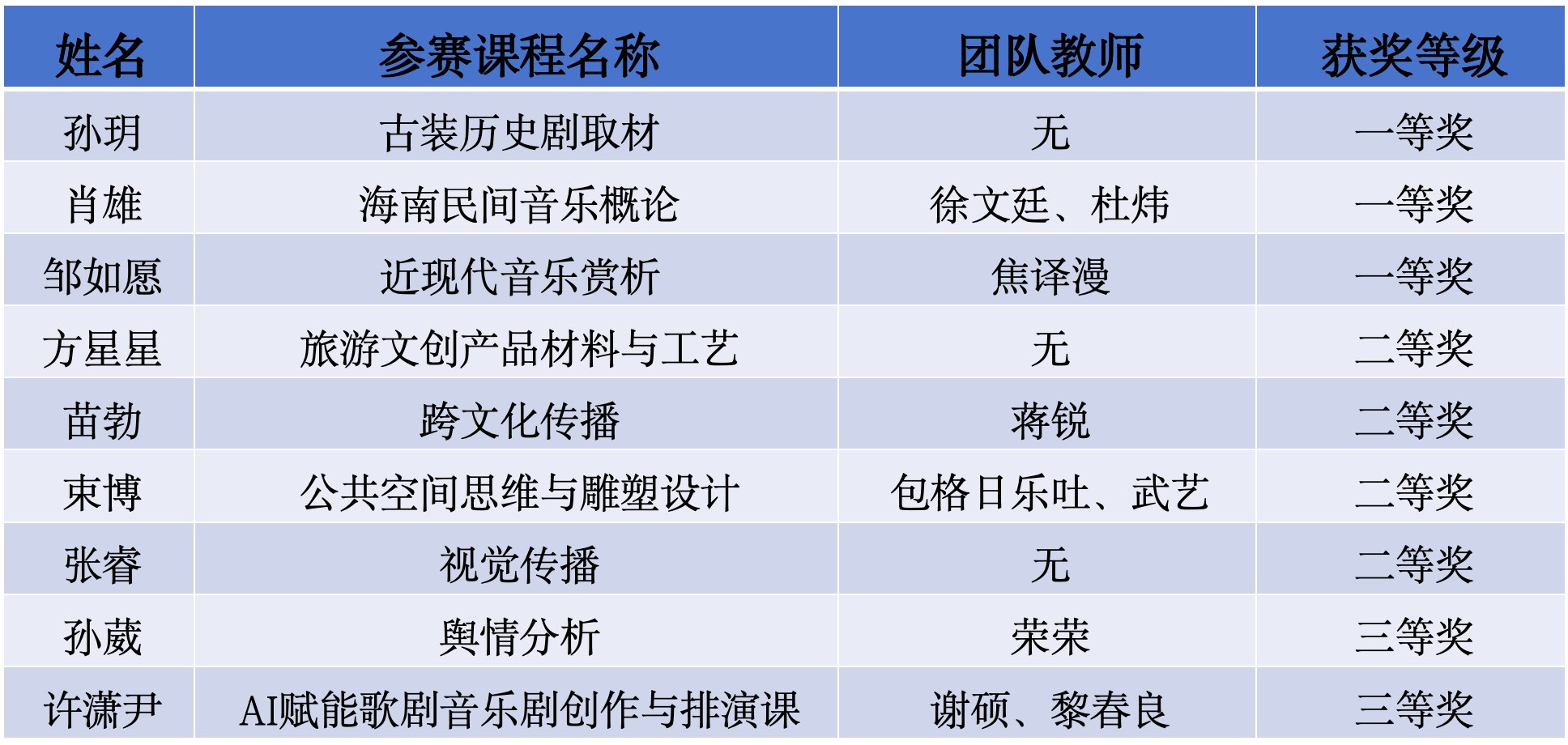 kaiyun官网教师结合自身教学实践,围绕“AI赋能课程建设”,将AI图像、视频生成、剪辑、三维建模、数字人、大数据等技术与中国优秀传统文化、音乐、设计、大众传播等议题结合,积极参赛,斩获佳绩。孙玥、肖雄、邹如愿荣获一等奖,方星星、苗勃、束博、张睿荣获二等奖,孙葳、许潇尹荣获三等奖。