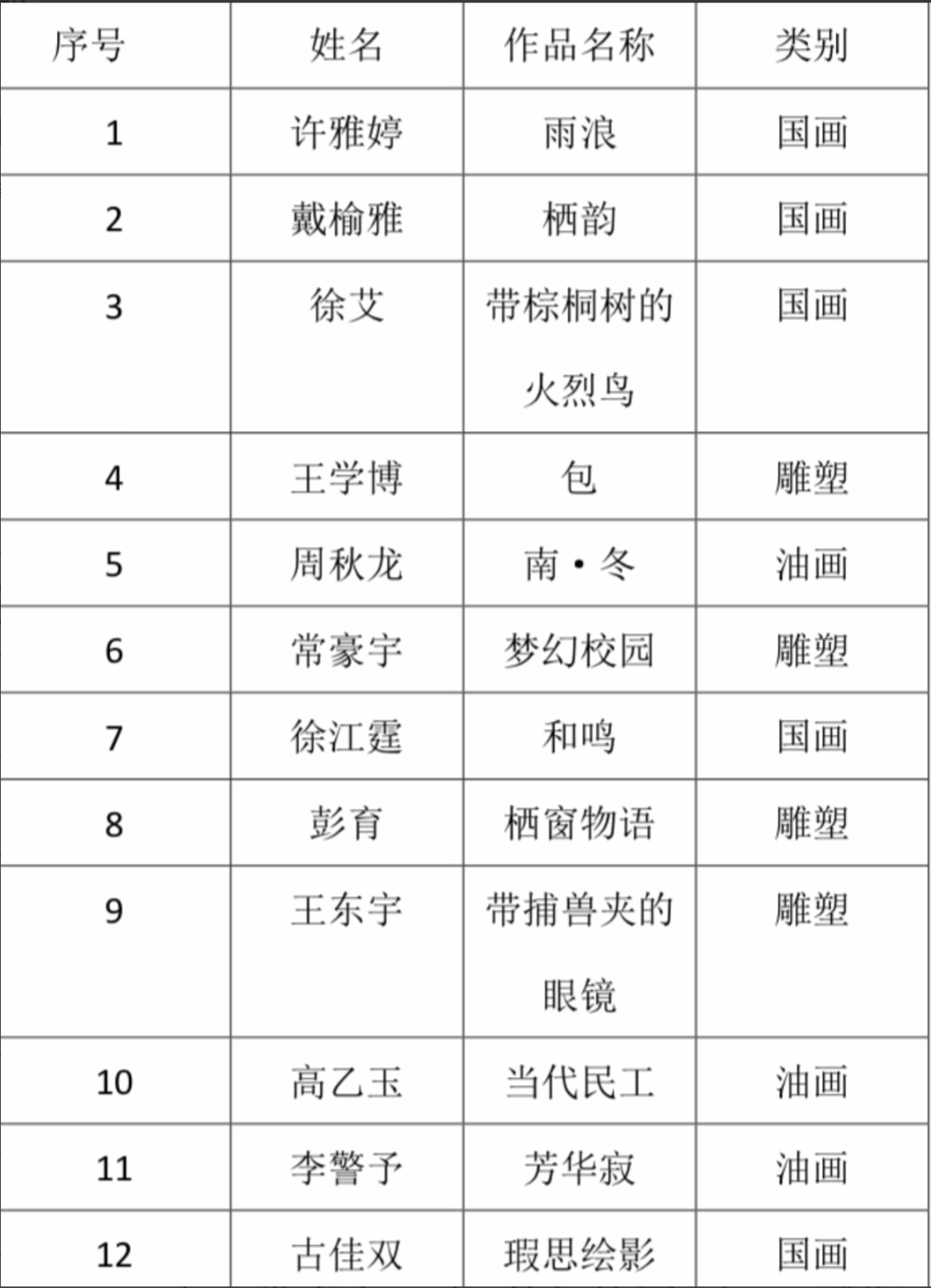 2024届美术作品收藏表