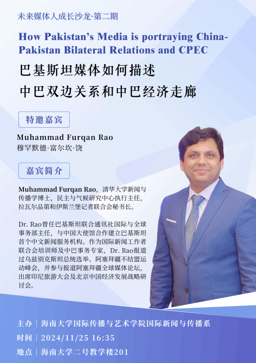 未来媒体人成长沙龙第二期:富尔坎·饶博士分享巴基斯坦媒体如何报道中巴双边关系和中巴经济走廊