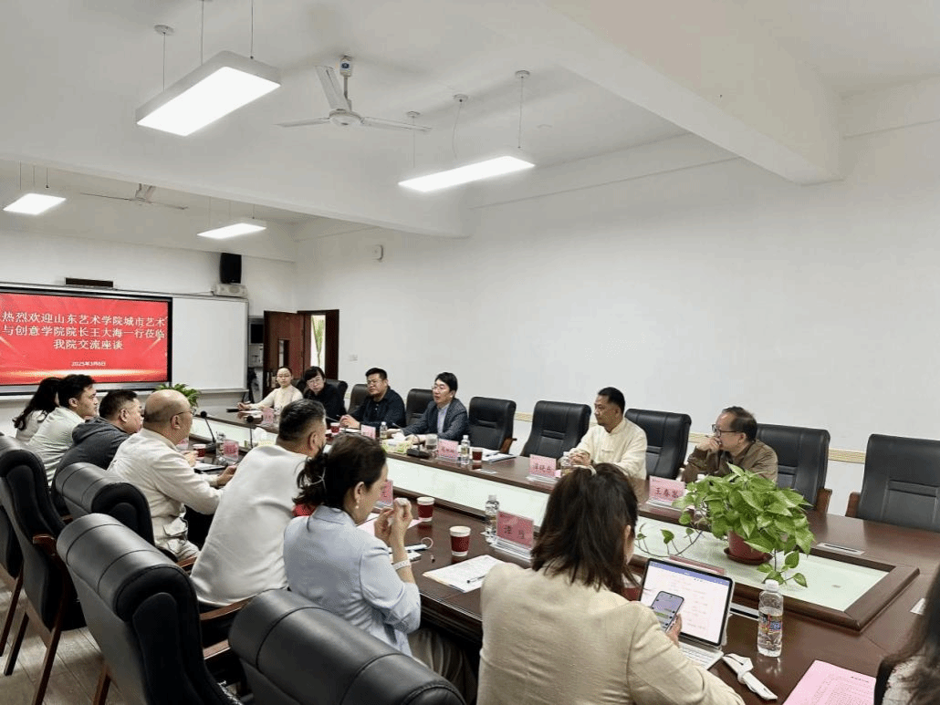 3月6日上午,山东艺术学院城市艺术与创意学院院长王大海、美育研究院院长李军以及部分企业代表到学院交流座谈,双方围绕专业建设、课程建设、美育服务社会及校企联动等议题展开深入探讨。kaiyun中国官方网站院长郑立波、副院长周琳琳、元志东,教研办主任王春嵩及各系主任、相关教师等出席会议。