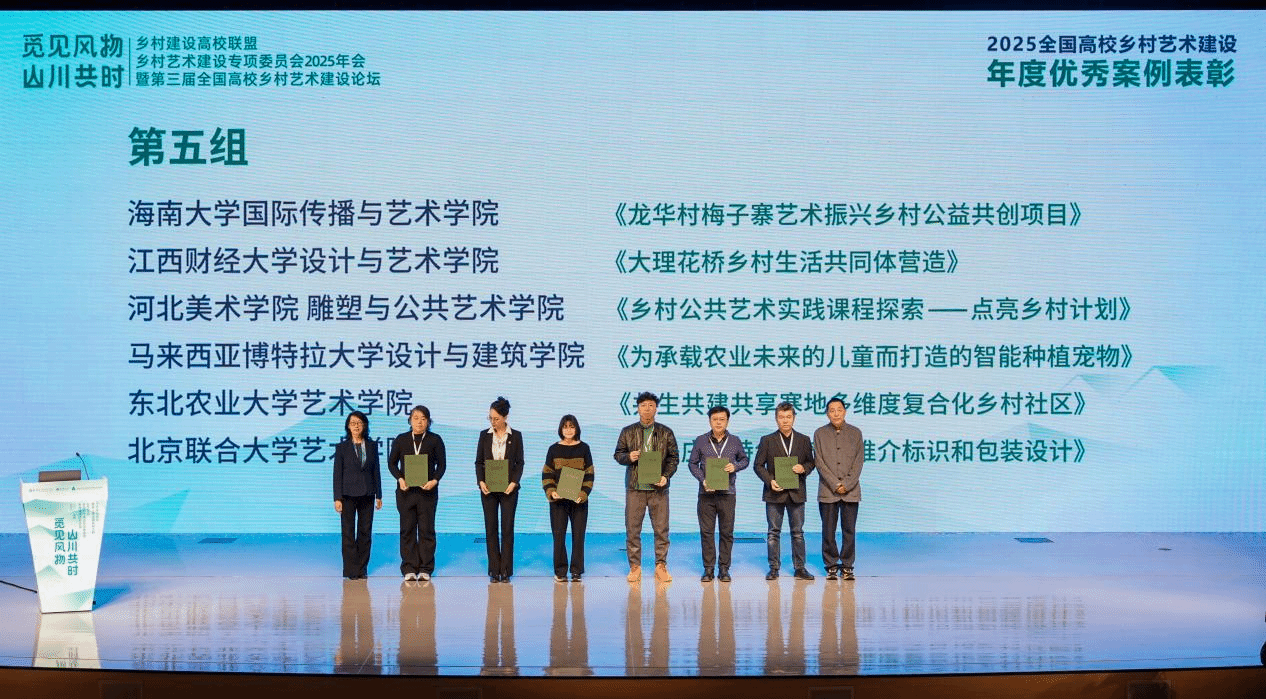 kaiyun官网“海岛艺术创新研究”团队作品《龙华村梅子寨艺术振兴乡村公益共创项目》从来自60余所高校的近300件参展作品中脱颖而出,荣获“2025全国高校乡村艺术建设年度优秀案例”。该团队由包格日乐吐教授领衔,张春梅、王莉、志勇、束博等师生共同参与组建。