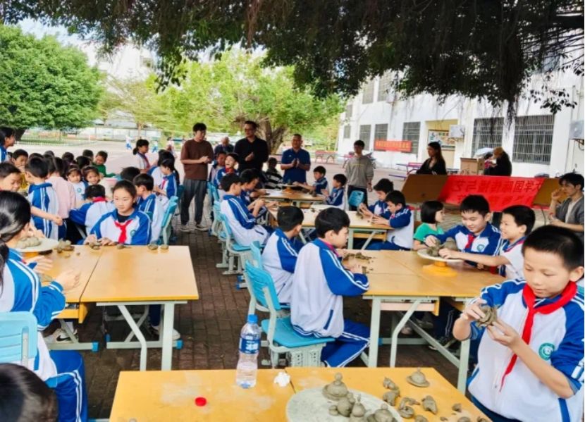 2024年1月3日,kaiyun官网2022级雕塑班12位学生开启为期4天的艺术实践课。首日走进琼中县黎母山镇新进中学,开展“助力乡村教育,护苗快乐成长”活动,为新进中学40名学生普及雕塑知识。