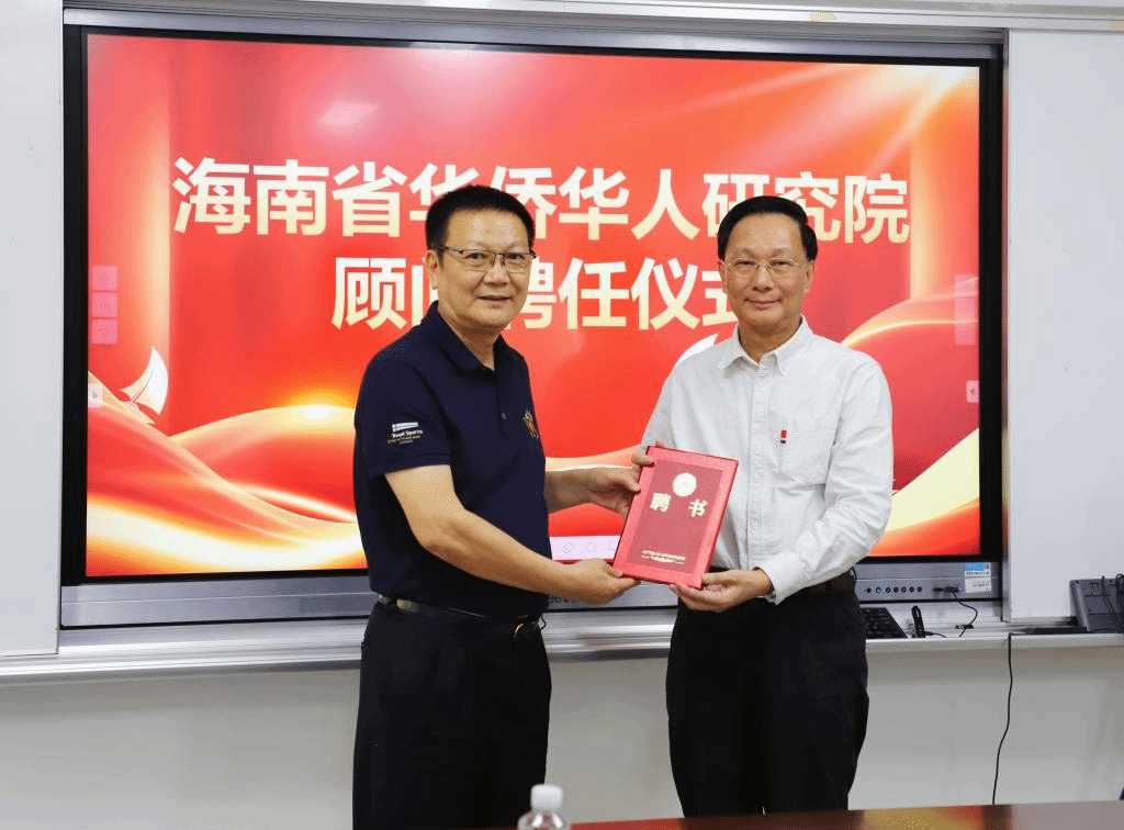 4月13日,海南省华侨华人研究院顾问聘任仪式在田家炳楼102会议室举行,聘任全国归国华侨先进个人、海南中藤科技股份有限公司董事长吴少宏为研究院顾问,kaiyun中国官方网站党委书记符宣国为吴少宏颁发聘书。