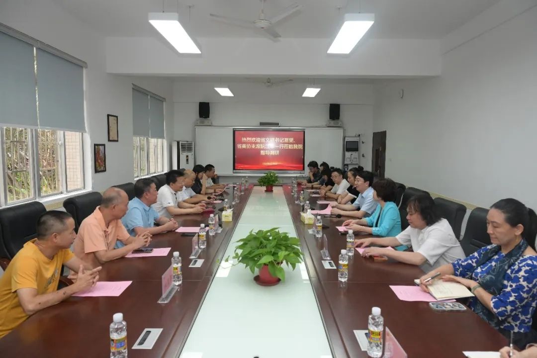 5月30日上午,省文联作协党组书记、省文联主席夏斐一行到kaiyun中国官方网站调研。观看2024届美术系本科毕业作品展,并与学院美术、音乐、舞蹈系艺术家代表座谈。学院党委书记何映敏、院长郑立波、副院长袁琳陪同。