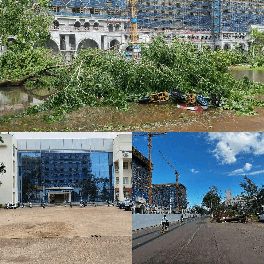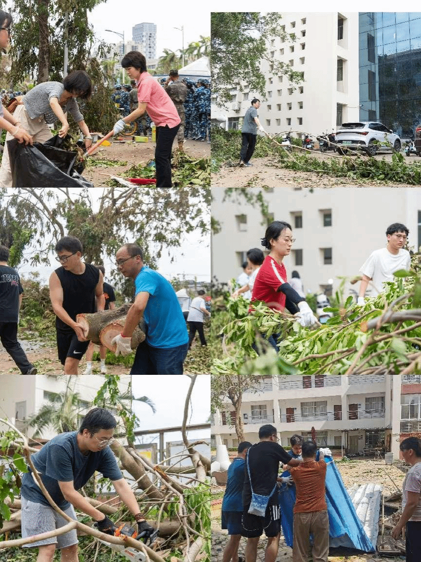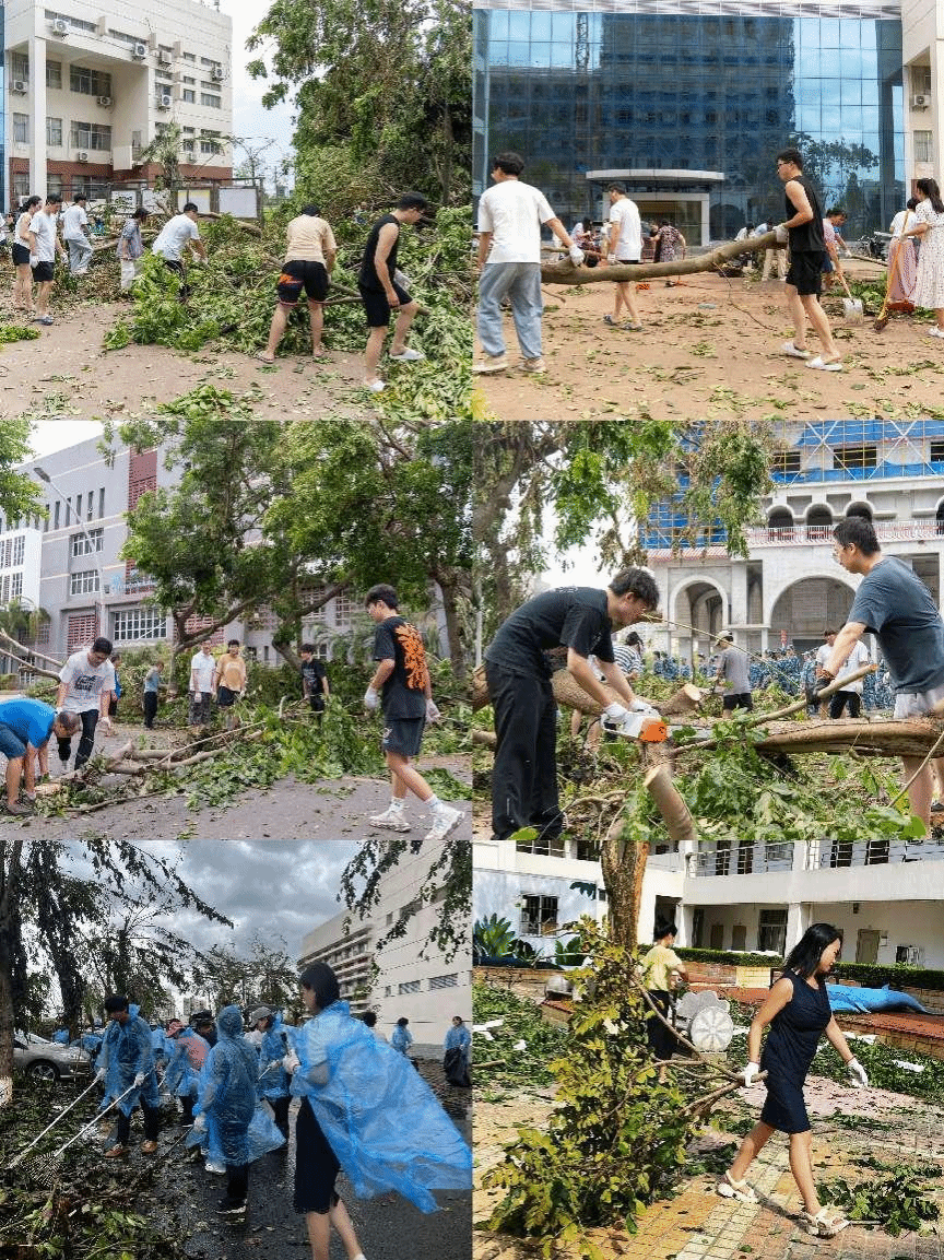 本站讯(通讯员 李政)今年第11号超强台风“摩羯”正面袭击我省,造成严重灾害,海大校园也受到了重创,尤其是基础设施受灾严重,房屋受损、树木倒伏,道路瘫痪。kaiyun中国官方网站党委积极响应学校党委号召,第一时间组织党员先锋队,带领学院教职员工志愿者及学生志愿者开展灾后重建工作,清理田家炳楼、艺术大楼及周边,为共“净”校园,全力以“复”。