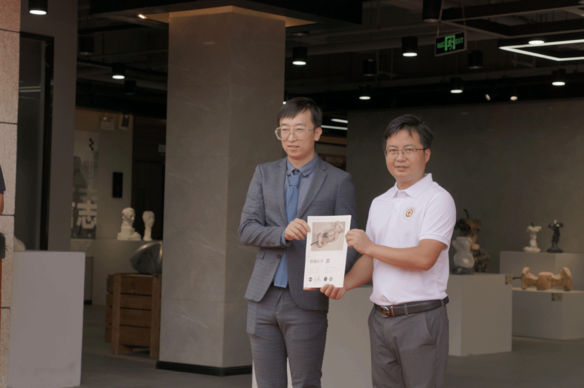 开幕式期间,海南立有美术职业技术学校廖定飞校长与束博进行了作品收藏仪式。