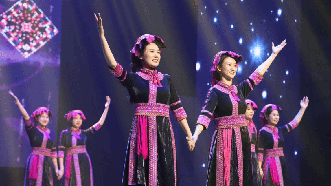 唱起《调声情》,跳起《打柴舞》,梦回诗乡歌海,悠扬轻盈;《黎苗歌谣联唱》,又见黎苗风韵,欢歌曼舞。