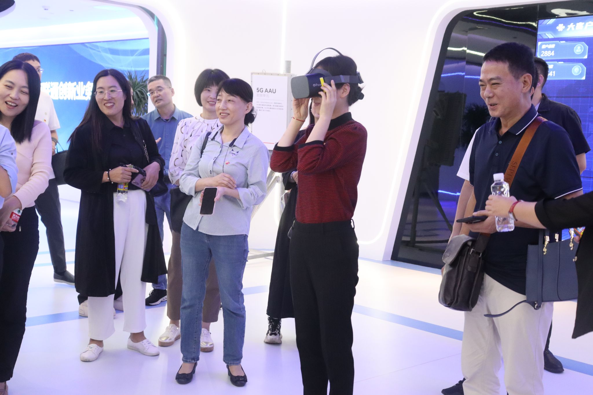 在科技展馆内,通过5G之门的互动场景及体验区域,示南联通在创新领域的智慧应用成果,云技术、大数据、人工智能、5G等新一代信息技术在各个领域的创新应用,切身体验5G全息投影、VR技术,感受智慧科技对生活带来的改变,让各位党员深刻感受到科技迅猛发展为社会进步和人们日常生活带来的巨大变革。