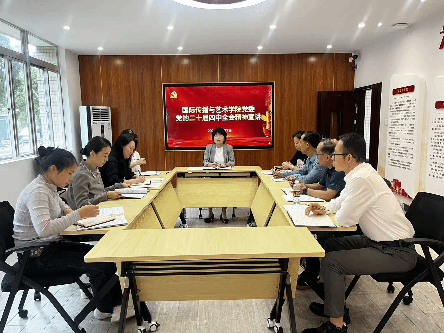 学院党委书记何映敏同志在理论学习中心组(扩大)会议进行宣讲并强调,党的二十届四中全会是在全面建设社会主义现代化国家新征程关键时期召开的重要会议,全院各党支部,全院师生要认真学习贯彻四中全会精神。全会提出的“扩大高水平对外开放,开创合作共赢新局面”“激发全民族文化创新创造活力,繁荣发展社会主义文化”等部署要求,与学院培养传播与艺术领域具有"国际化视野、扎实理论基础、创新实践能力"的复合型人才的办学定位紧密契合,为学院办学指明了方向。作为肩负文化传播使命的教育工作者,把全会精神融入立德树人全过程,既教会学生精湛的艺术技能,更要培育他们坚定的文化自信,让他们成为兼具艺术素养与国际视野的文化传播使者。